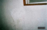 雨水の侵入、結露の痕跡による壁面の汚れが目立っています。さらに、長年の使用による手垢、局所的な汚れや、タバコのヤニ・煙等による全面的な汚れもあります。